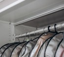 Штанги можно разместить на разных уровнях, чтобы учитывать размер и длину костюмов. В результате длинная одежда хранится отдельно, не соприкасаясь с короткой, что помогает избежать сминания и повреждений нарядов.